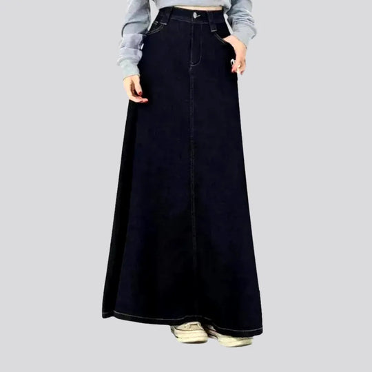 High-waist dark casual jeans skirt