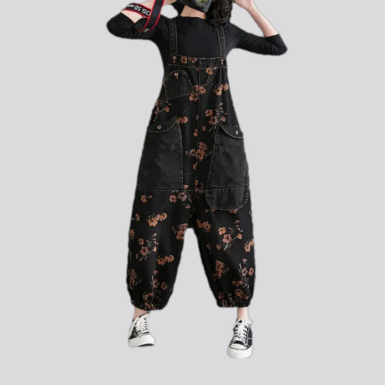 Baggy fit floral pattern women's denim overall