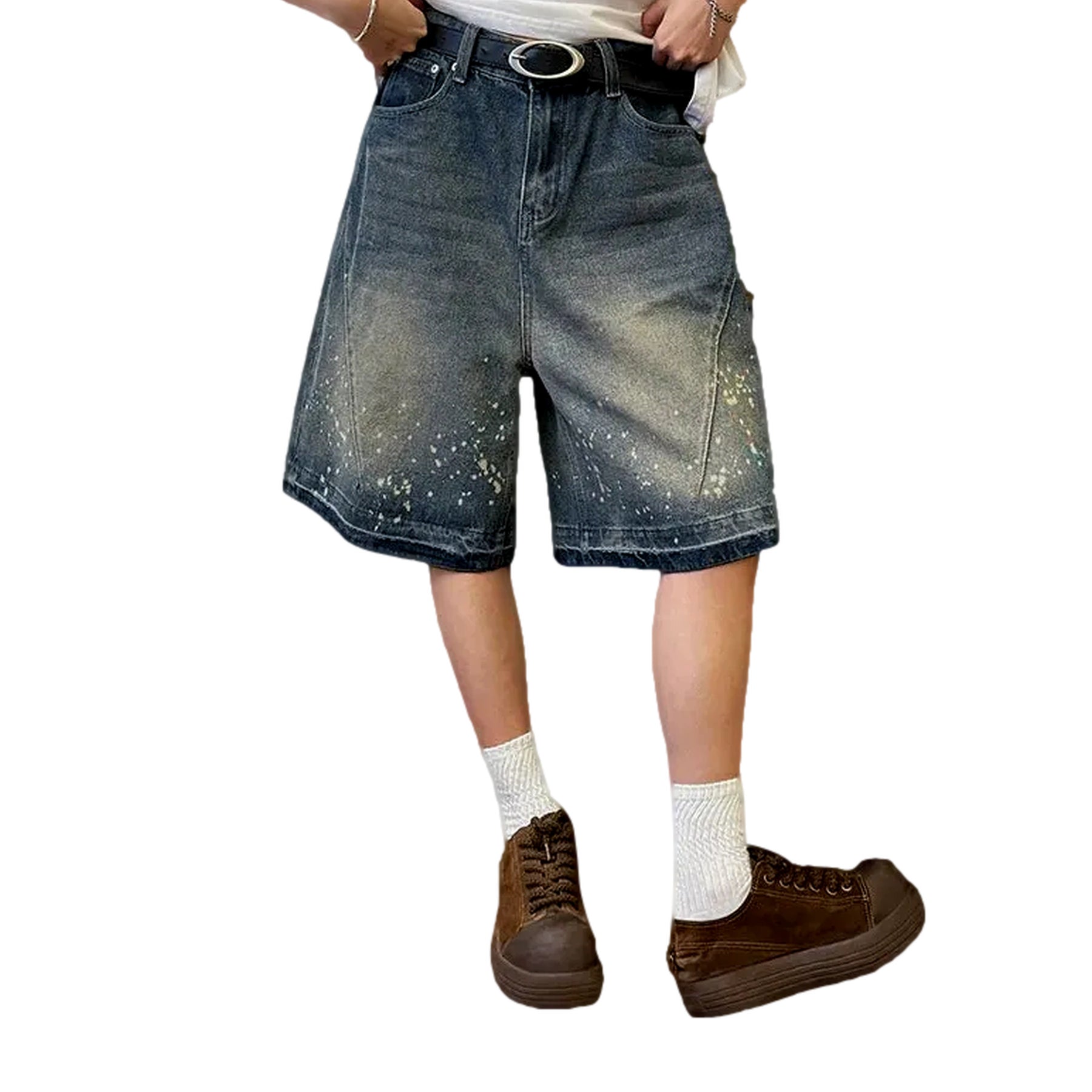 Retro style paint baggy denim shorts for men